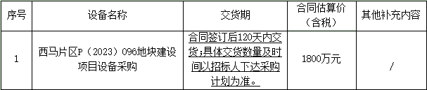 1.1项目名称:西马片区P(2023)096地块建设项目设备采购